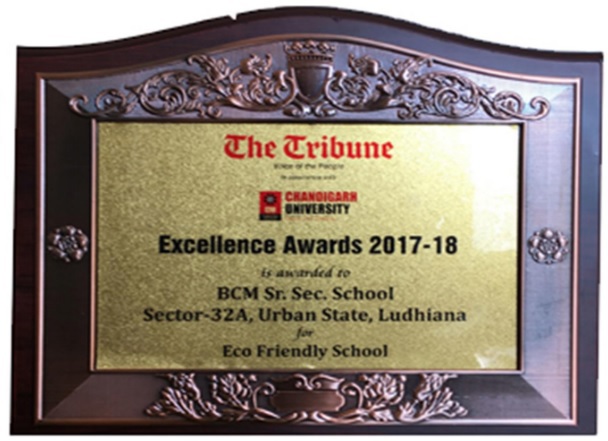 THE TRIBUNE EXCELLENCE AWARD FOR ECO FRIENDLY SCHOOL 2017 - 2018