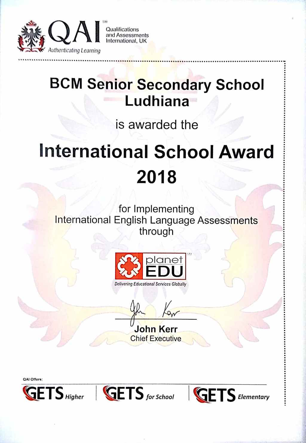 INTERNATIONAL SCHOOL AWARD 2018