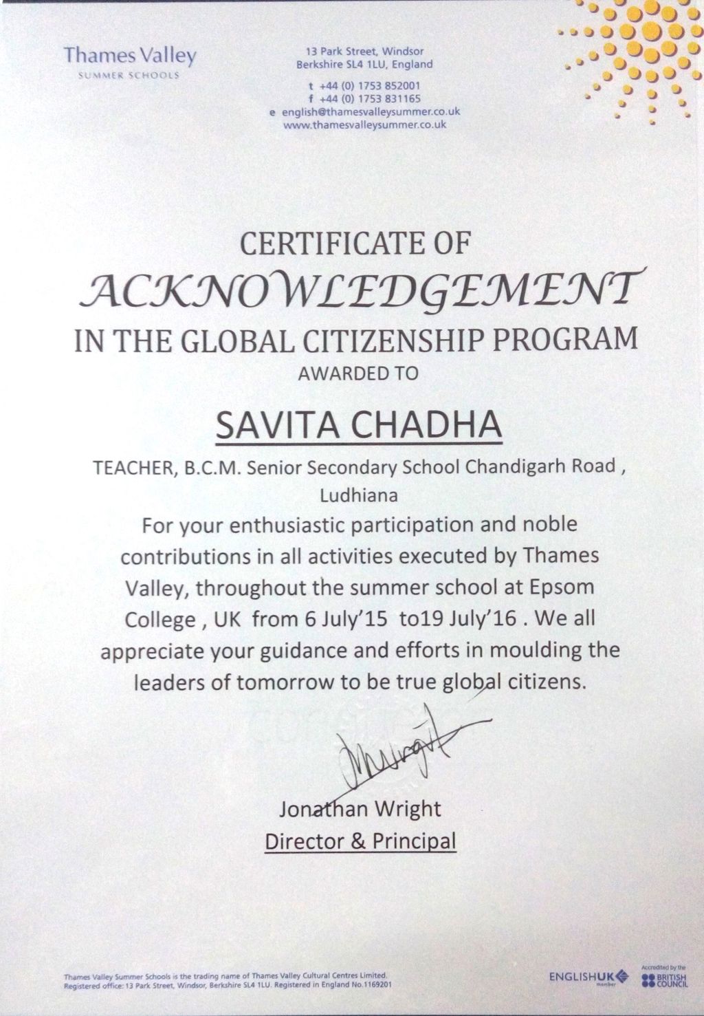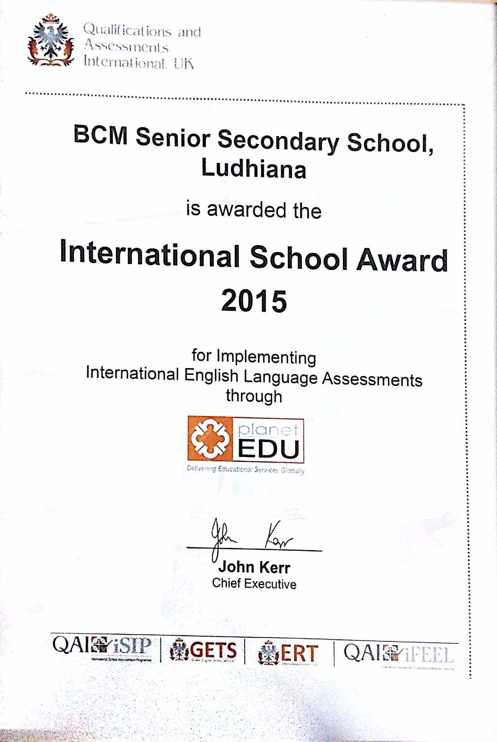 INTERNATIONAL SCHOOL AWARD 2015