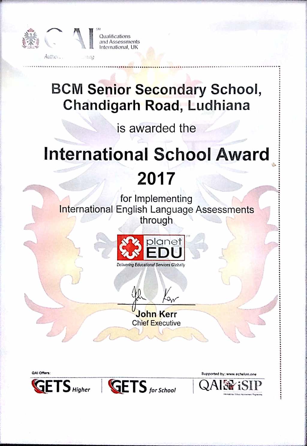 INTERNATIONAL SCHOOL AWARD 2017
