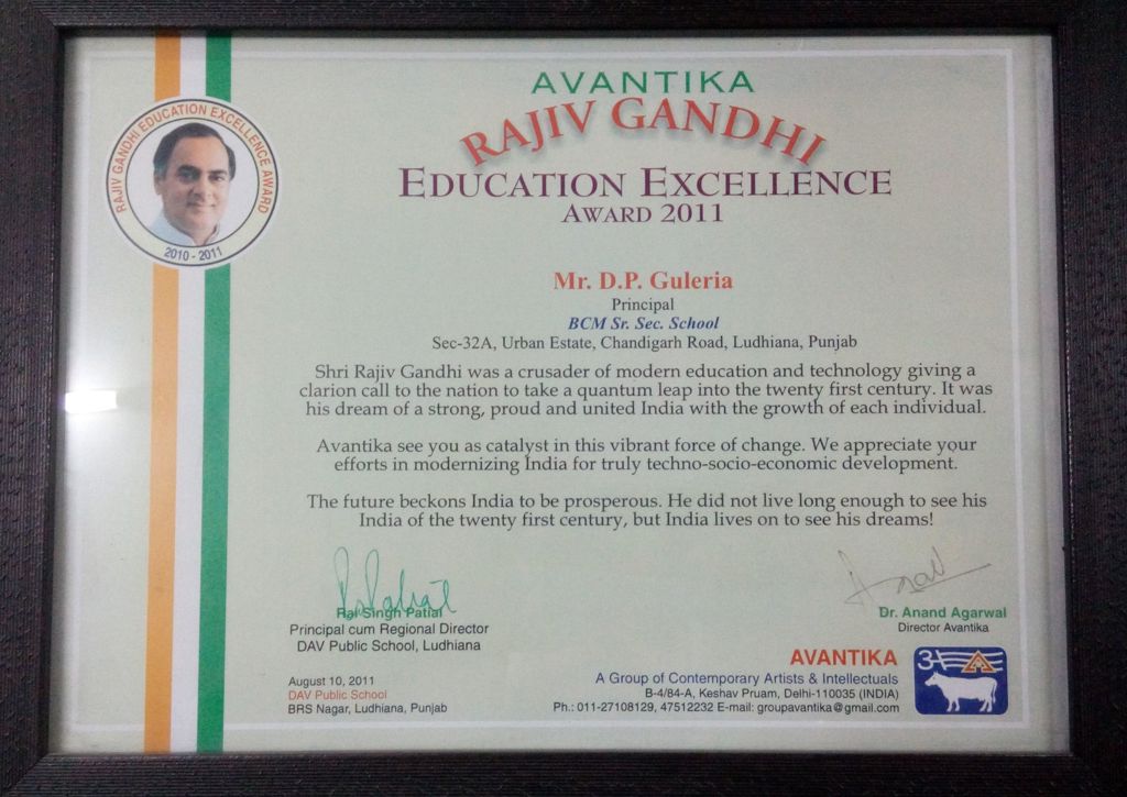 RAJIV GANDHI EDUCATION EXCELLENCE AWARD